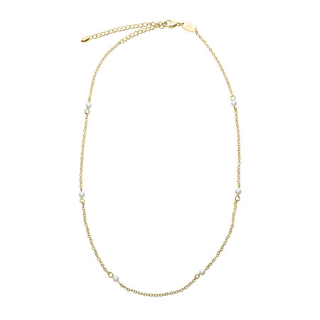 The soft shimmer of pearls is irresistibly feminine. At the same time, pearls are real all-round talents and can be worn with a casual leisure look in jeans and with elegant wardrobe on special occasions. The white, shimmering artificial pearls are integrated into the delicate necklace. The necklace can be worn individually and also works with other necklaces in the current layering look, where several necklaces of different lengths are worn together.